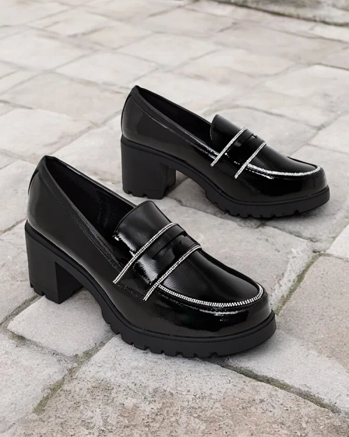 - Klasikiniai moteriški loferiai su kulniuku. Modelis pagamintas iš lakštų škėtės, su sintetiniu odiniu įdėklu. Batai turi subtilų papuošimą viršutinėje dalyje formoje zirkonių. Puikiai tinka kasdieniam nešėjimui!
