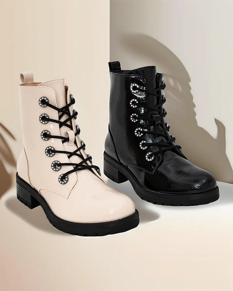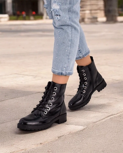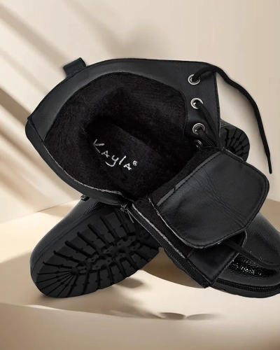 - Stilingi batai iš ekologiško lako odos. Bateliai yra su segikliais. Modelis turi storesnes padas ir kailio pamušalą. Puikiai tinka rudeniui!