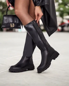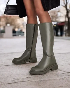 - Stilingi moteriški keliai virš kelių batai su platforma. Viršus pagamintas iš aplinkai draugiško odos imitacijos ir turi audinio vidpadį. Modelis užsegamas su užtrauktuku. Puikiai tinka kasdieniams rudens deriniams!