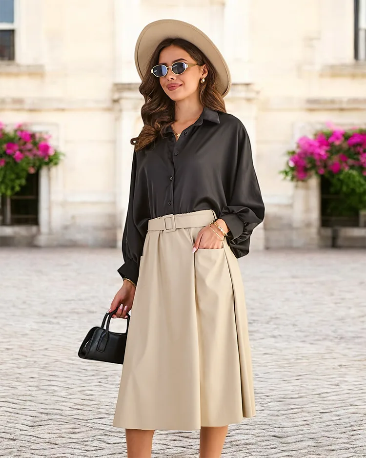 - Moterų vidutinio ilgio sijonas gaminamas iš odos panašaus medžiagos. Modelis turi elastingą juosmenį ir 2 kišenes. Idealus pagrindas daugybei unikalių aprangos derinių! Modelis pateikiamas su diržu. PASTABA: Matavimo tikslumas (+/-) 1 cm.