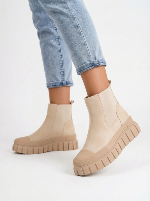 • Moteriški platforminiai aukšti batai iš ekologiško odinio samto. Paprasti įsidėvimo batai su patogiu audiniu šilkinimu. Puikiai tinka rudeniui!