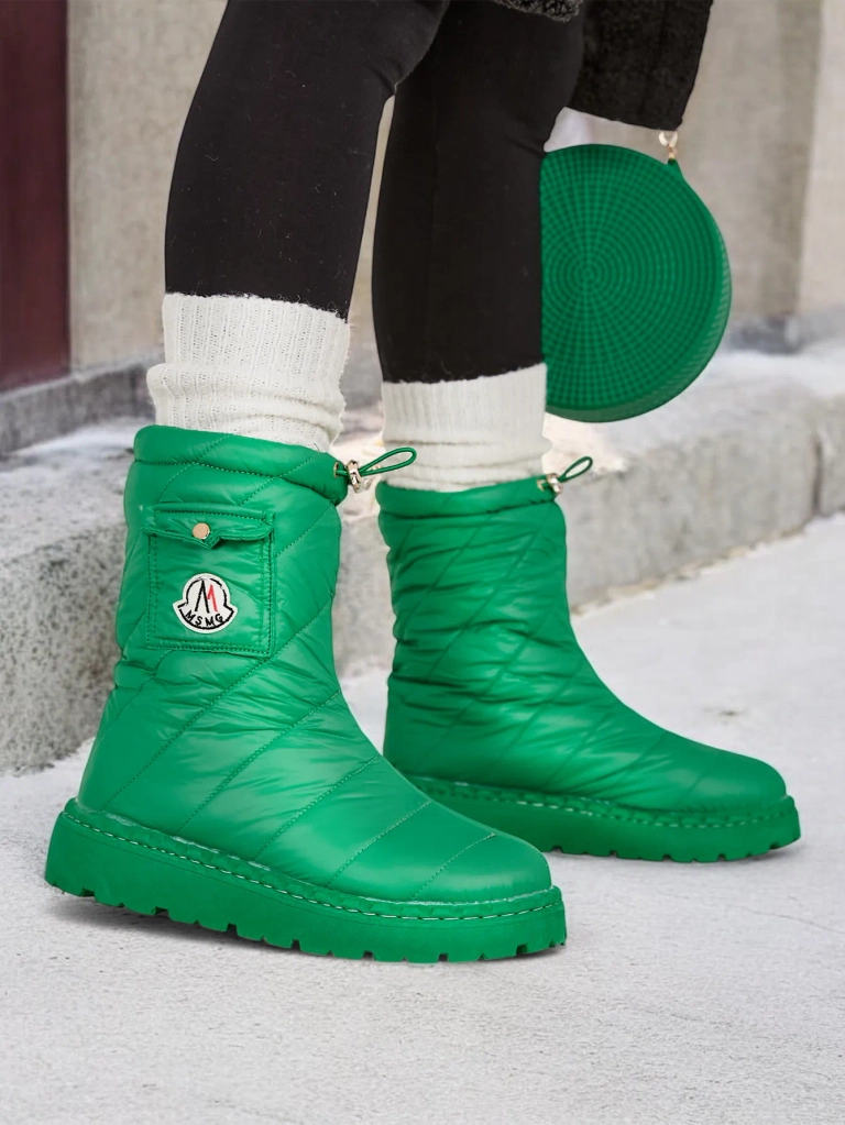 • Moteriški sniego batai su stiebus pagaminti iš medžiagos, panašios į šiukšlinė. Viduje iškloti kailiu, batai turi virvę, kad puikiai prigultų. Puikiai tinka šaltesnėms sezonams!