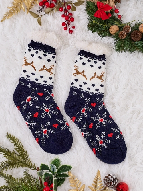 • Gražios storos moteriškos kojinės su šventiniu raštu. Viduje aptrauktos baltu, šiltu kailiu. Kojinės puikiai tinka šaltoms, žiemos vakarienėms!