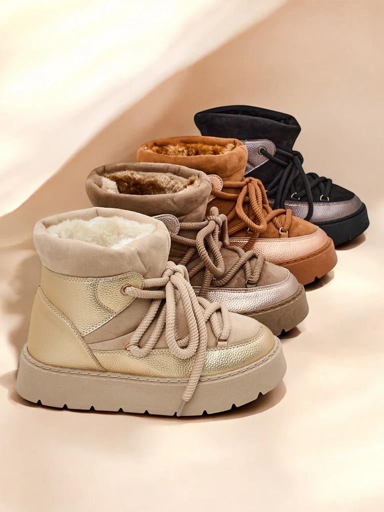 • Moteriški sniegliai su virvėmis, pagaminti iš ekologiško odos ir ekologiško antilopo samto. Viduje malonus kailis, su lipnumu ir virvėmis. Puikiai tinka žiemai!