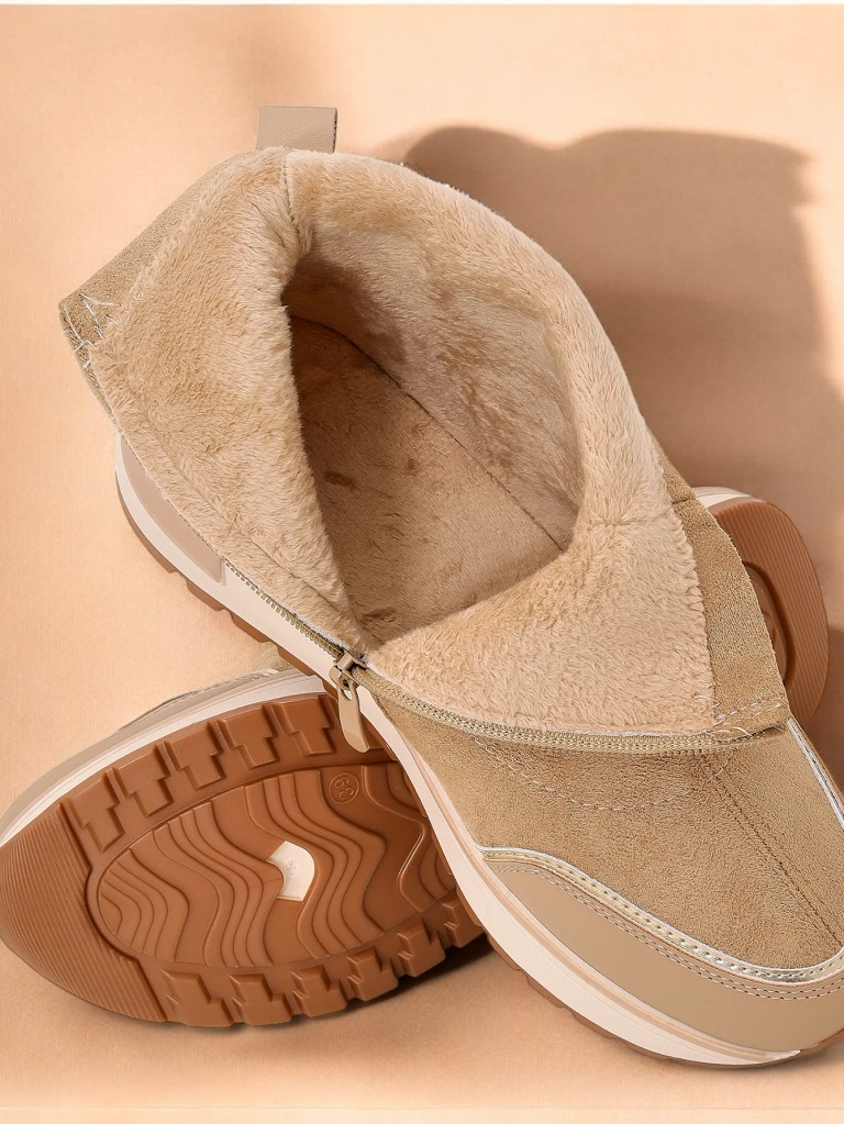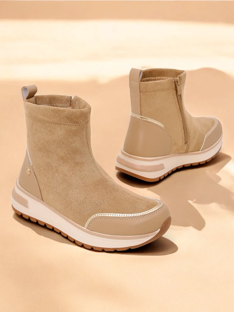 - Moteriškos platforminės kulkšnės, pagamintos iš veliūro ekologiškos odos. Batai užsegami su užtrauktuku, pamušalai patogiu kailiu. Puikiai tinka rudeniui!