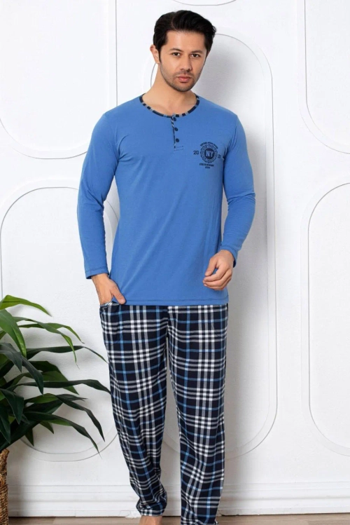 - Patogios vyrų 2 dalių pižamos su ilgomis rankovėmis ir ilgomis kelnėmis, pagamintos iš medvilnės. Modelis turi dvi kišenes. Puikiai tinka jaukiems vakarams namuose! PASTABA: Matavimo tikslumas (+/-) 1 cm.