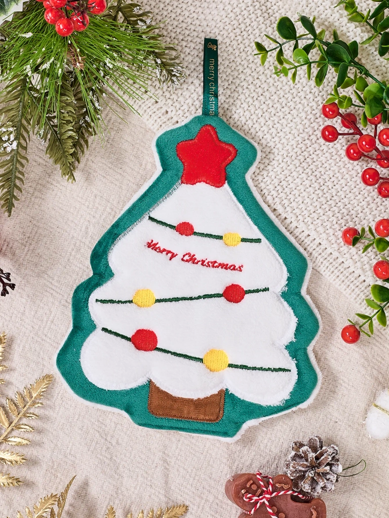 - Kalėdinė maža rankšluostė iš malonaus medžiagos. Modelis turi dekoratyvinį užkupį ir matmenys yra 21 cm x 21 cm. Šios rankšluostės puikiai sugaus Kalėdų atmosferą!