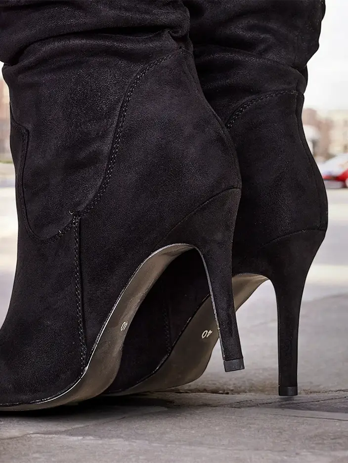 • Moteriški stiletto batai su smailiu pirštu. Avalynė visiškai pagaminta iš ekologiškos zomšos odos. Sneaker modelo. Vidus užpildytas švelnia izoliacija. Ideali pasirinkimą rudens aprangai!