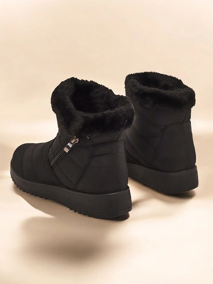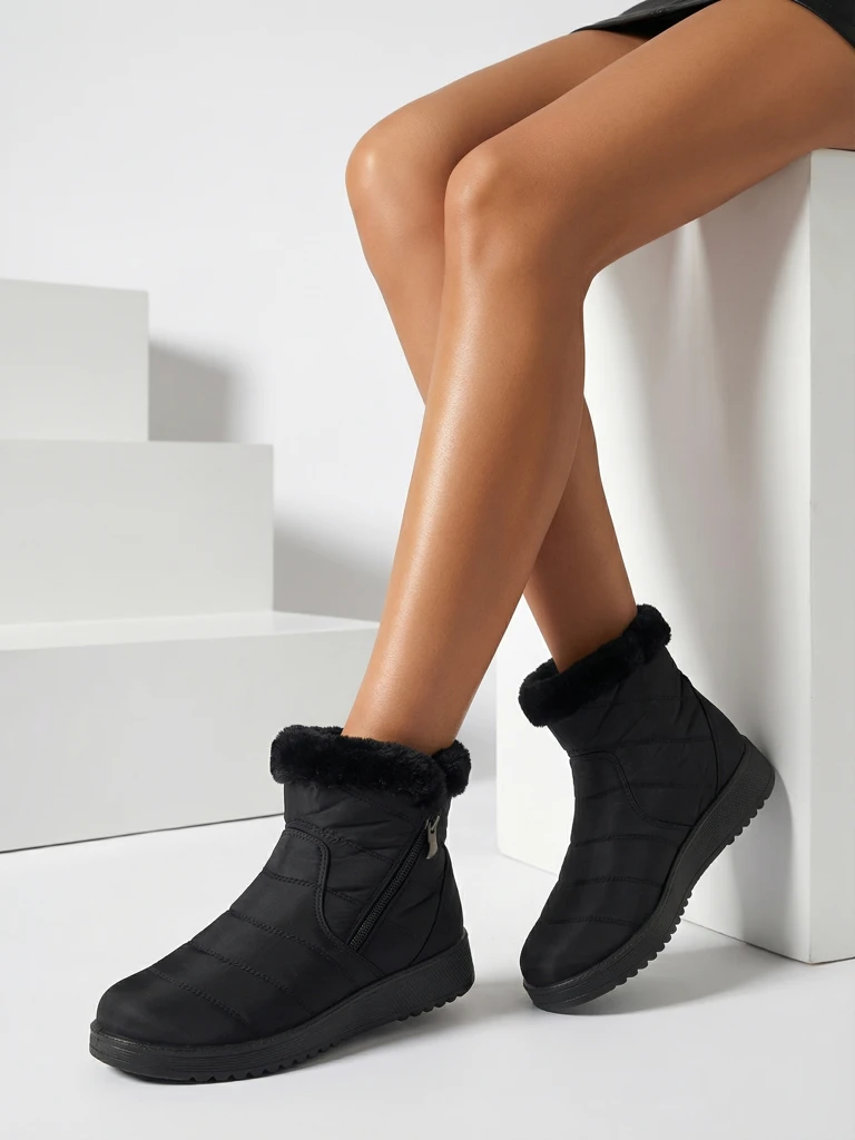 Šie elegantiški botai pagaminti iš aukštos kokybės medžiagų, užtikrinančių ilgaamžiškumą ir apsaugą nuo šalčio. Išorinė dalis pagaminta iš tvirto poliesterio, o vidinis pamušalas iš minkšto kailio, garantuojančio komfortą ir šilumą. Be to, šone esantis užtrauktukas palengvina apsirengimą, o guminis padas su protektoriumi užtikrina gerą sukibimą slidžiose dangose.