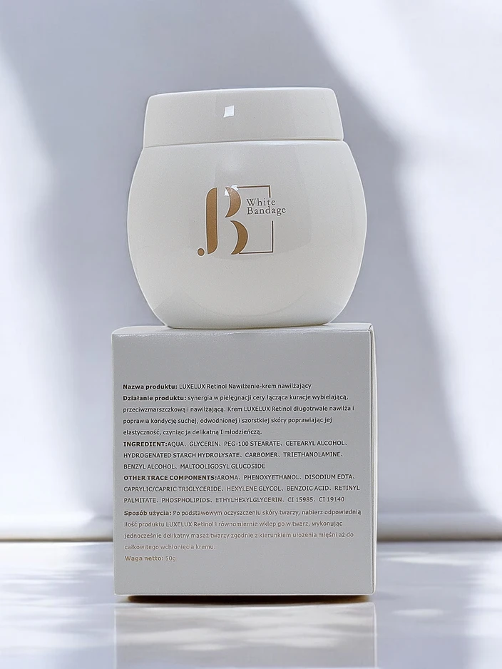 - LUXELUX Retinolio drėkinimas - kremas, jungiantis šviesinimo, raukšlių mažinimo ir drėkinimo savybes. Teikia ilgalaikį drėkinimą, gerina elastingumą ir sausos bei šiurkščios odos būklę, todėl oda tampa švelni ir jaunatviška.