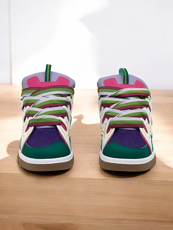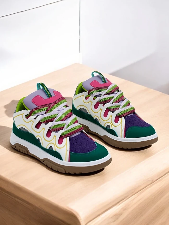 - Madingi moteriški sportiniai batai su storesne padu, pagaminti iš ekologiškos odos ir ekonubuko. Viduje yra audinio padas, o modelis yra su raišteliais. Jie puikiai papildys kasdienius drabužius.