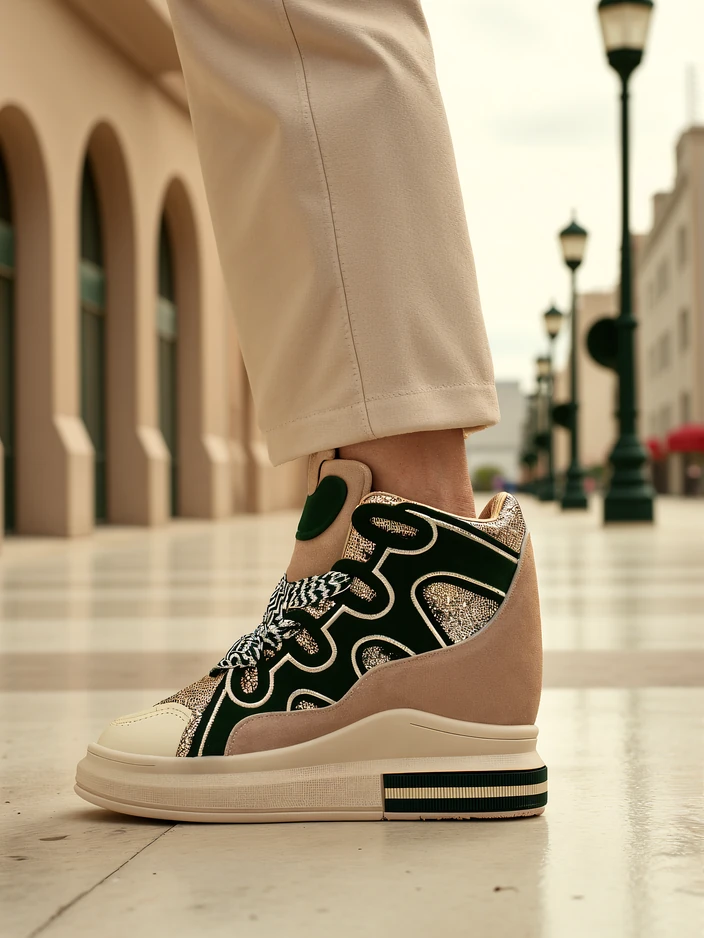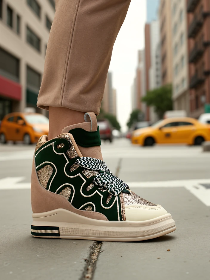 - Patogūs moteriški sportiniai bateliai su paslėptu pakulniu, pagaminti iš ekologinės odos ir ekologinės velveto. Modelis turi raištelius, su audiniu pamušalu. Viršutinė dalis švelniai prisitaikys prie pėdos. Labai stilingas aksesuaras!