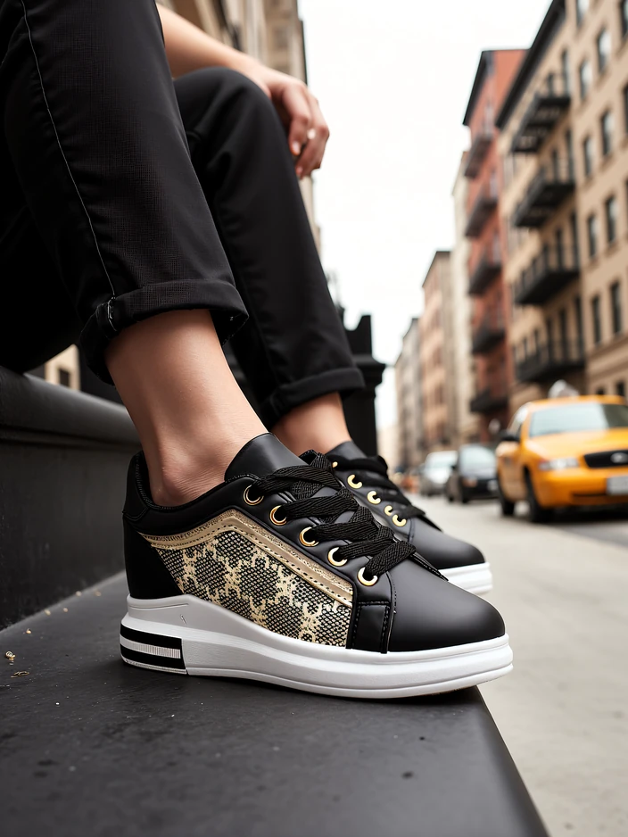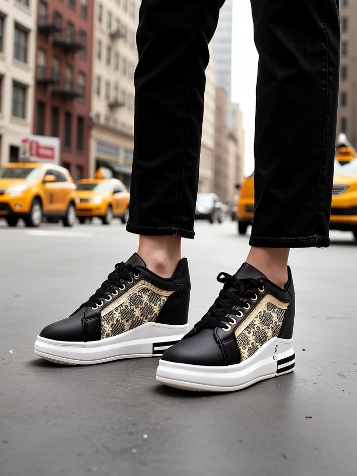 - Patogūs moteriški sportiniai bateliai su paslėptu kotu, pagaminti iš ekologiškos odos ir spaudinėtos medžiagos. Modelis su raišteliais, medžiaginė padas. Elastinga viršutinė dalis švelniai prisitaikys prie pėdos. Super stilingas aksesuaras!