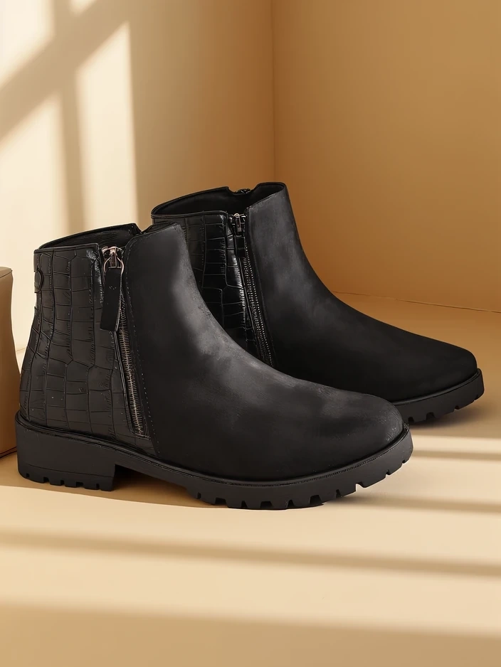 - Nuostabūs moteriški auliniai batai su plokščiu kulnu, pagaminti iš zomšos ekonatūralios odos. Interjeras su minkštu pūku užtikrina komfortą ir šilumą net ir vėsesniais dienomis. Modelis turi užtrauktuką.