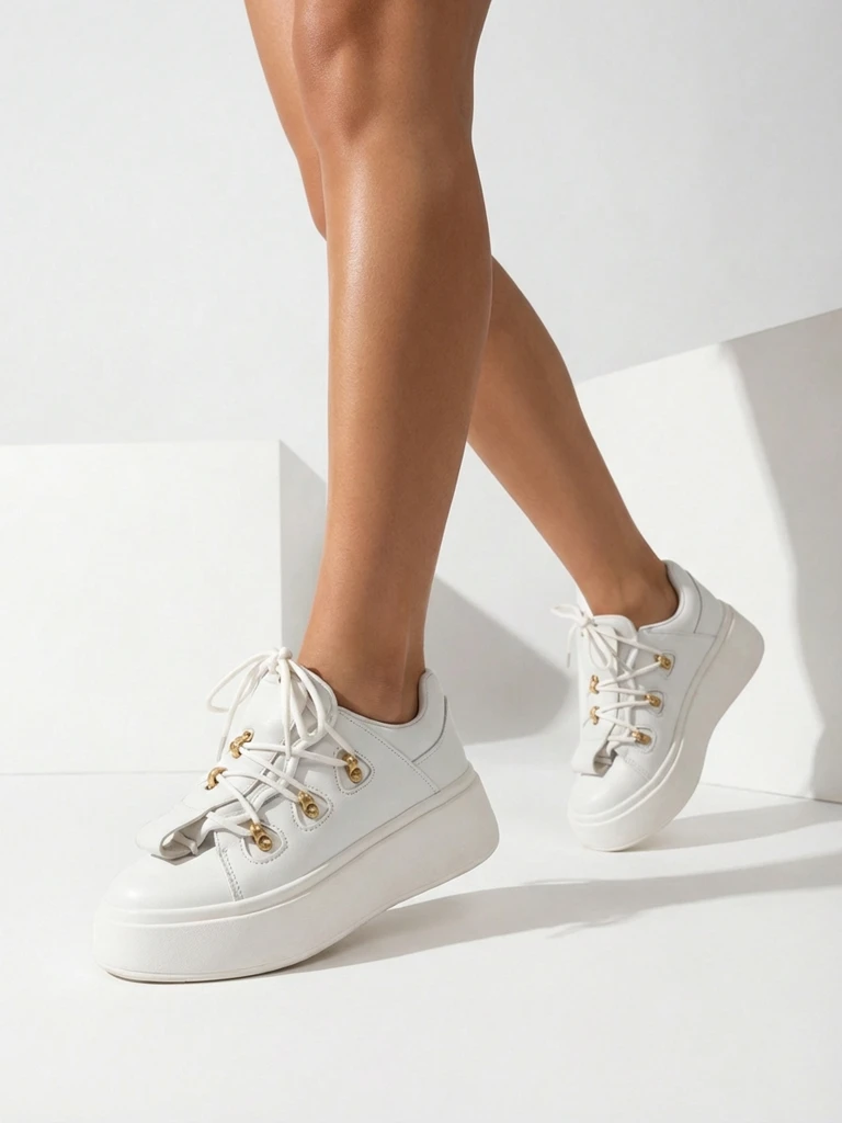- Moteriški sportiniai bateliai su storesniu padu. Nėriniai viršus pagamintas iš ekosuede. Vidus pagamintas iš malonaus audinio. Modelis turi dekoratyvinį liežuvėlį. Puikiai tinka kasdieniam naudojimui!