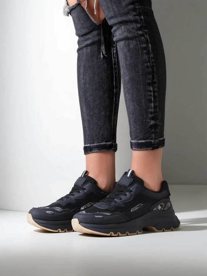07198 Royalfashion Moteriški sportiniai bateliai Totter 12345678 Stilingi moteriški bateliai, kurie sujungia komfortą su madingu dizainu. Modelis pagamintas iš ekologiškos odos ir audinio derinio, taip pat su audinio įdėklu. Puikiai tinka kasdieniam dėvėjimui, jie suteikia komfortą ir lengvumo, derinasi prie daugelio laisvalaikio aprangos.