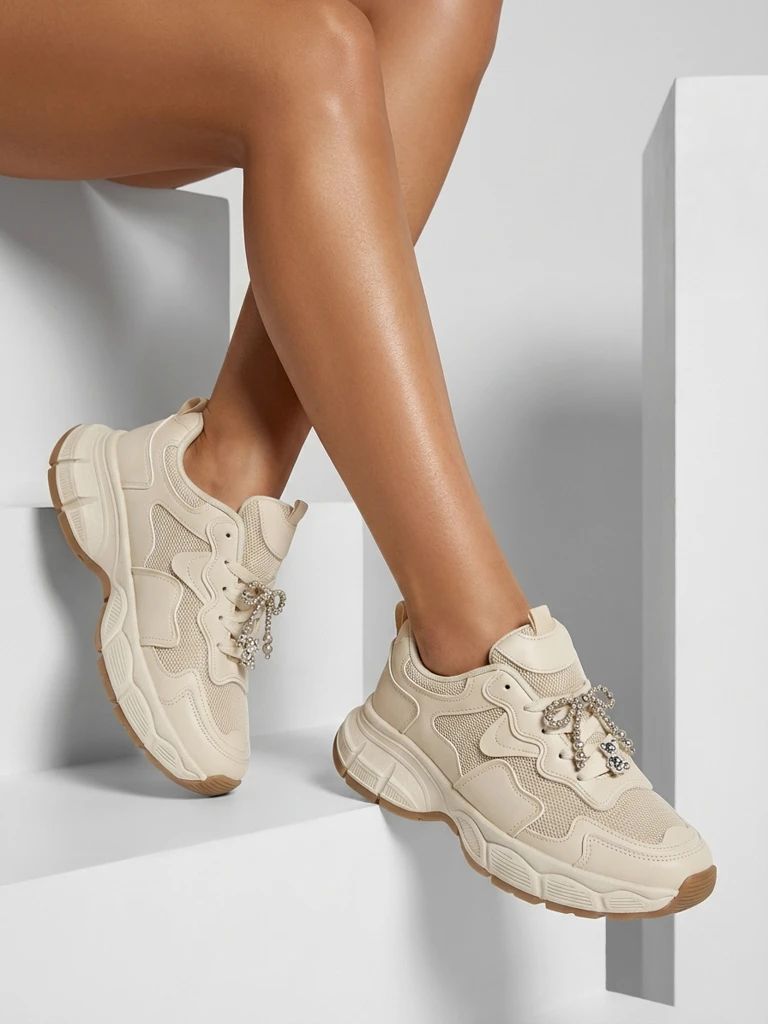- Moteriški sportiniai batai, pagaminti iš ekosintetikos ir tinklinės medžiagos. Modelis ant storesnio pado. Su raišteliais. Puikiai tiks kasdieniams drabužiams! Papuošti nuimama grandine.