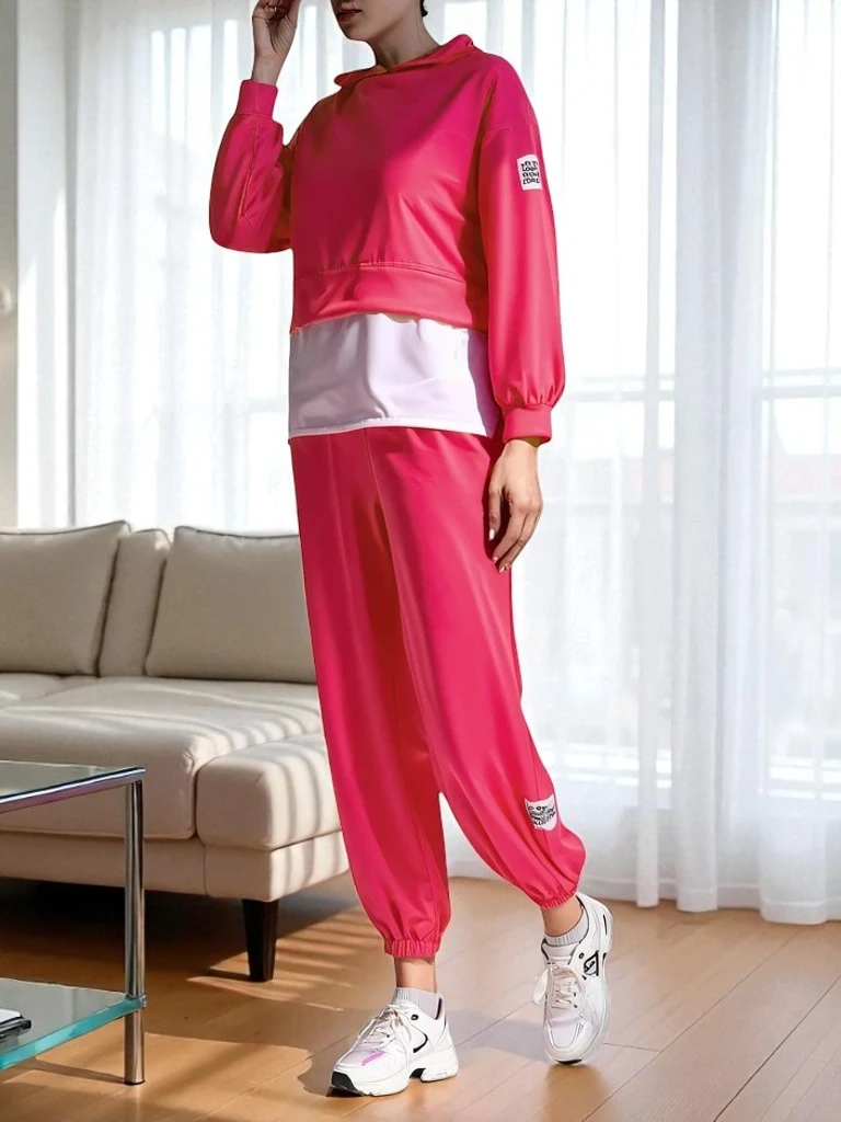 - Moterų kasdienis komplektas iš malonios medžiagos. Puloveris turi ilgomis rankovėmis ir marškinių tipo įdėklą. Kelnės turi 2 kišenes, elastinę juostą liemeniui ir rankogaliams. Puikus tiems, kurie vertina komfortą.
