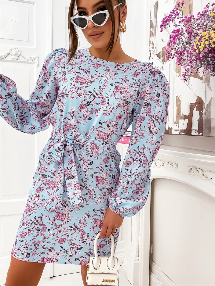 • Gėlėta mini suknelė moterims su pūstomis rankovėmis ir diržu, pagaminta iš lengvos medžiagos. Modelis su apvalia iškirpte, ilgomis rankovėmis ir diržu, kuris akcentuoja liemenį. Puikiai tinka su šlepetėmis! PASTABA: Išmatavimų tikslumas (+/-) 1 cm.