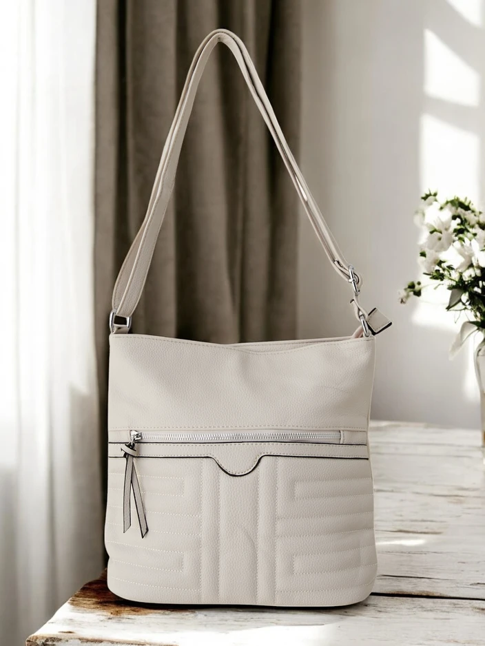 - Moterų rankinė su užtrauktuku, pagaminta iš ekologiškos odos. Modelis turi 1 skyrių, 3 vidinius kišenes ir 2 išorines kišenes. Be to, ji turi reguliuojamą diržą. Puikiai tinka kasdieniam naudojimui!
