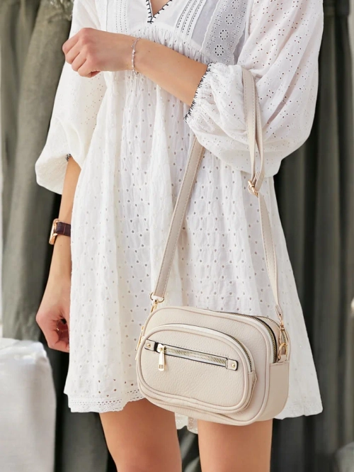 - Moteriška ovali rankinė su užtrauktuku, pagaminta iš ekologiškos odos. Modelis turi 2 skyrius ir 2 išorinius kišenes. Be to, ji turi nuimamą, reguliuojamą diržą. Ideali kasdieniam naudojimui!