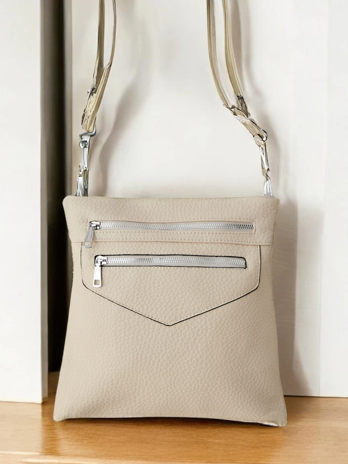 - Moterų rankinė su užtrauktuku, pagaminta iš ekologiškos odos. Modelis turi 1 skyrių, 3 vidinius kišenes ir 2 išorines kišenes. Be to, ji turi reguliuojamą diržą. Puikiai tinka kasdieniam naudojimui!