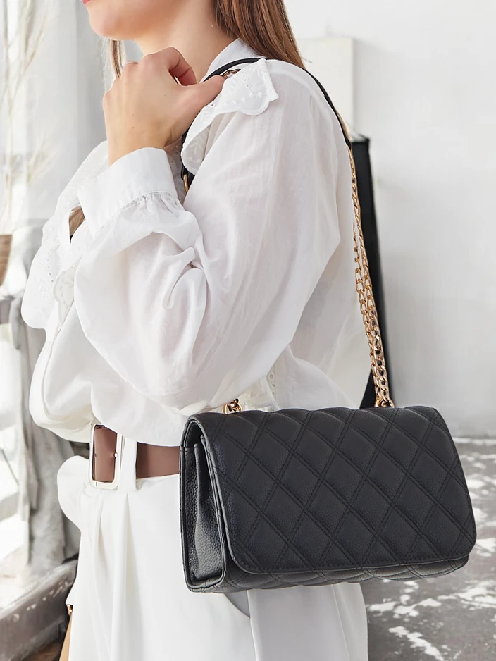 - Elegantiška siuvinėta maža moteriška rankinė su magnetiniu užsegimu, pagaminta iš ekodermės. Modelis turi 1 skyrių su skirtuku. Be to, jis turi gražią grandinėlę. Puikiai tinka kasdieniam naudojimui!