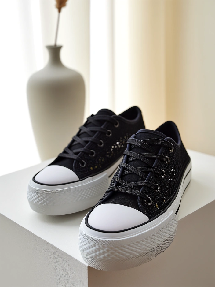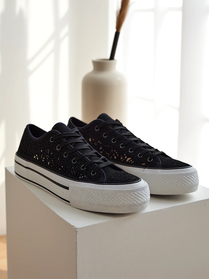 Aureliana to niezwykle stylowe damskie trampki wykonane z wysokiej jakości tkaniny, zaprojektowane specjalnie z myślą o kobietach kochających komfort oraz wyjątkowy, modny wygląd. Cholewka tych butów została uszyta z przewiewnej ażurowej tkaniny, co zapewnia doskonałą cyrkulację powietrza i komfort nawet podczas ciepłych, letnich dni. Materiał ten to wysokogatunkowa tekstylia, które cechują się zarówno wytrzymałością, jak i delikatnością dla skóry.Wkładka wewnętrzna również została wykonana z miękkiej tkaniny tekstylnej, co zapewnia dodatkową wygodę oraz amortyzację. Płaski obcas i grubsza, elastyczna podeszwa o wysokości 2,5 cm gwarantują stabilność oraz wsparcie podczas codziennych spacerów czy spotkań. Trampki te to idealna propozycja dla kobiet ceniących sobie miejski styl oraz wygodę na co dzień.Korzyści z użytkowania tych trampek to przede wszystkim lekkość i przewiewność konstrukcji. Granatowy kolor sprawia, że buty świetnie komponują się z wieloma stylizacjami. Delikatny wzór ażurowy dodaje im subtelnego uroku i sprawia, że całość prezentuje się lekko oraz kobieco.Propozycje stylizacji:1. Casualowa stylizacja z jasnymi jeansami typu boyfriend, białym t-shirtem i lekką kurtką jeansową na chłodniejsze dni.2. Spódnica midi w kwiatowy wzór i lekka bluzka – idealny wybór na wiosenny spacer lub spotkanie z przyjaciółką.3. Szorty oraz oversize’owa koszula związaną w pasie, doskonała propozycja na letnie wyjścia do miasta czy na plażę.Czyszczenie i pielęgnacja: trampki należy czyścić delikatną szczoteczką i letnią wodą z łagodnym detergentem. Nie należy ich prać w pralce ani suszyć bezpośrednio na słońcu, aby zachować pierwotną strukturę tkaniny. Przechowywać w suchym i przewiewnym miejscu.Aktualne trendy: ażurowe trampki w intensywnych, głębokich kolorach, takich jak granat, to obecnie jeden z najgorętszych trendów sezonów wiosna-lato. Kobiety coraz chętniej sięgają po buty, które są nie tylko wygodne, ale wyróżniają się również oryginalnym, ręcznie wykończonym detalem. Model Aureliana łączy te wszystkie cechy, dzięki czemu jest idealnym wyborem dla nowoczesnych kobiet ceniących styl i komfort.