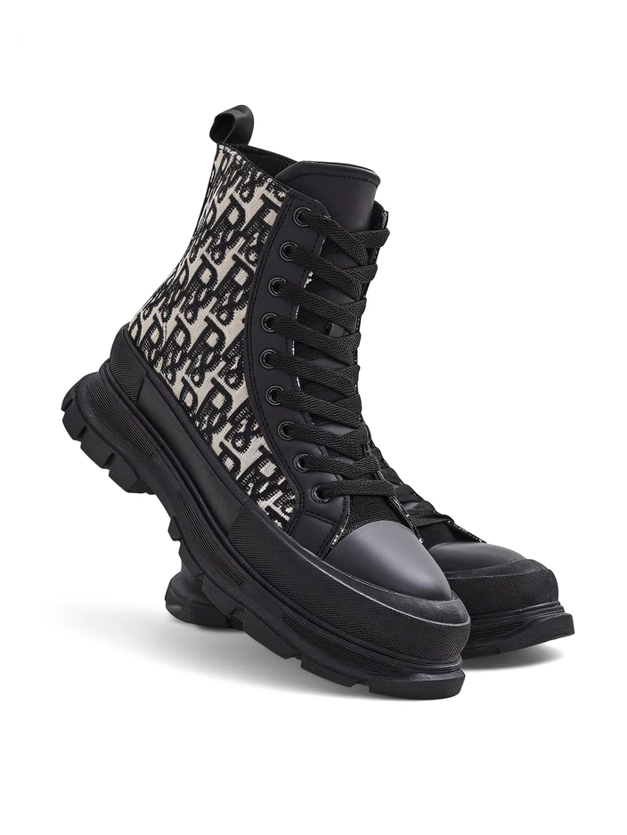 - Nuostabūs moteriški auliniai batai su plokščiu kulnu, pagaminti iš ekologiškos odos ir raštuoto audinio. Vidus išklotas audiniu. Šnuromis surištas modelis.