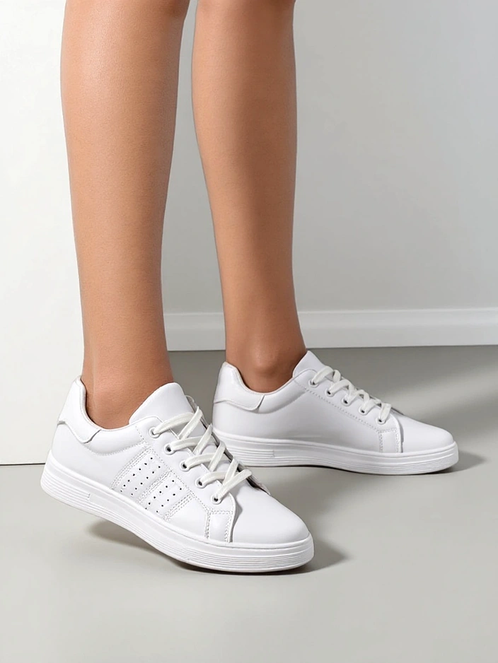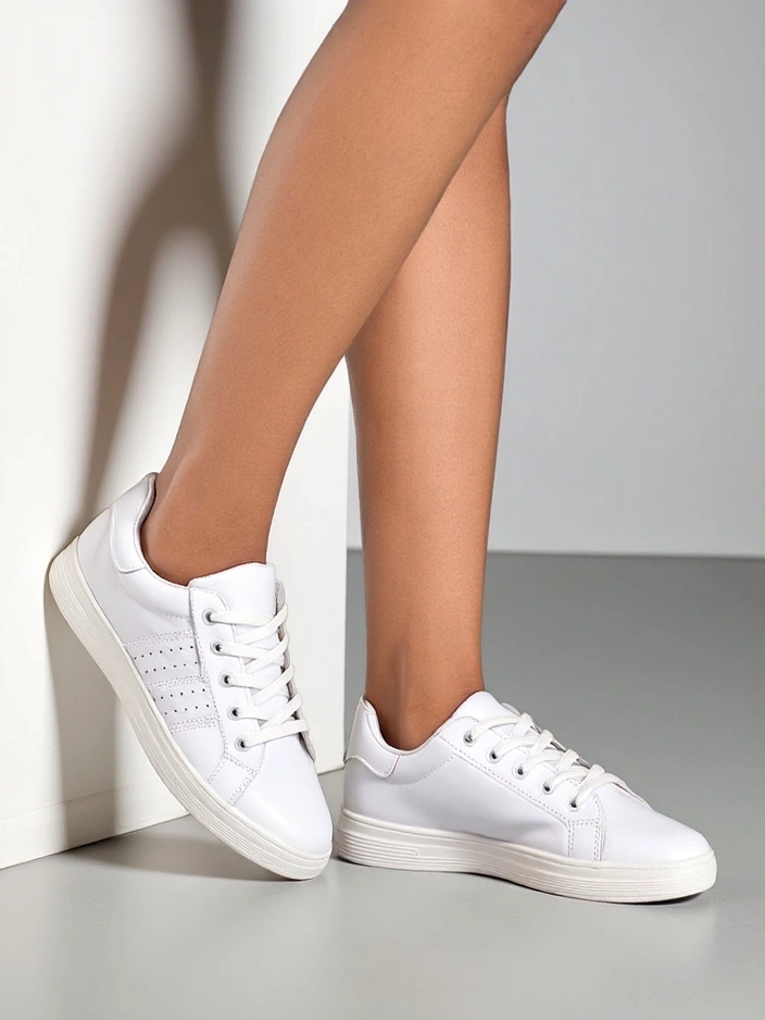 • Stilingi moteriški nėriniuoti sportiniai bateliai plokščiu padu. Batų viršus pagamintas iš ekologiškos odos. Viduje medžiaginis vidpadis. Patogūs batai kiekvienai dienai!