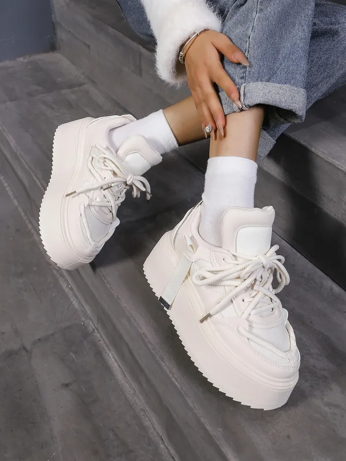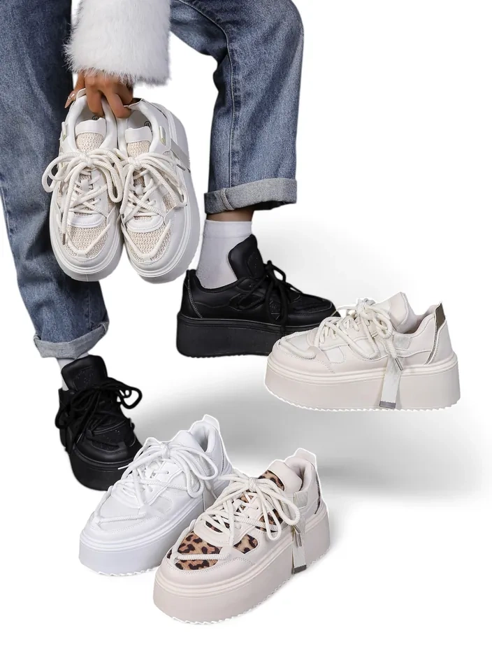 - Moteriški platforminiai sportbačiai - puikus stiliaus ir komforto derinys. Avalynė pagaminta iš ekokožių. Šnoruojamas modelis su audinio vidpadžiu. Idealiai tinka aktyviems žmonėms!