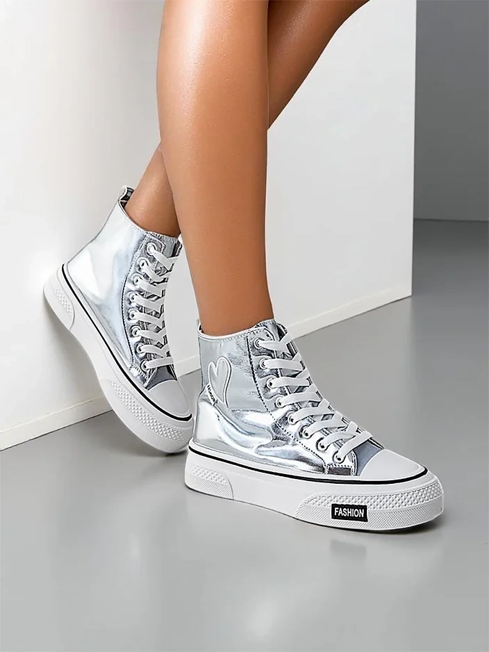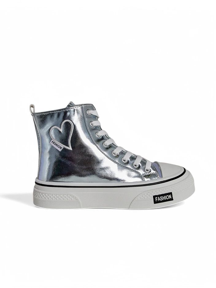 Royalfashion Aukšti moteriški sportiniai bateliai su širdimi Sidabrinė širdis