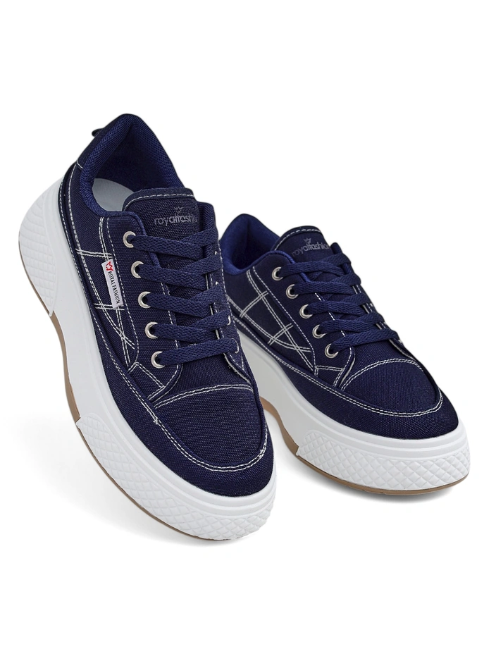 Moteriški sportbačiai Callista su platforma, tamsiai mėlyni, audinys, pavasaris-vasara