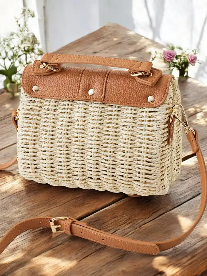 - Mini lagaminėlio tipo rankinė pagaminta iš pintos medžiagos. Modelis turi užsegimą su užtrauktuku. Vidus yra išklotas audiniu. Tai bus puikus aksesuaras bet kokiam vasaros deriniui!