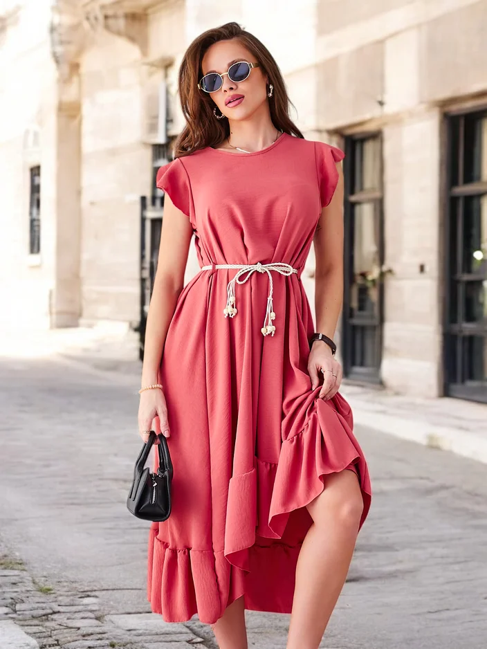 Royalfashion Moteriškas midi suknelė su raukiniais ir trumpomis rankovėmis