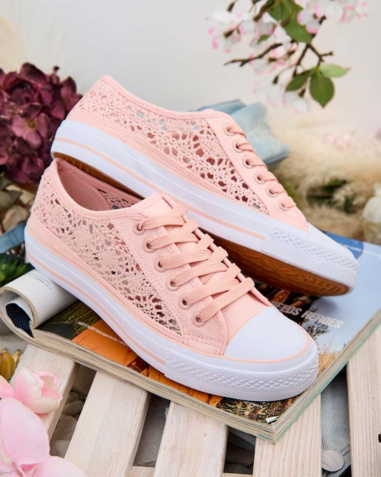 Rožiniai moteriški audinio sportbačiai „Kalipso“ – ažūriniai sportbačiai plokščiu padu