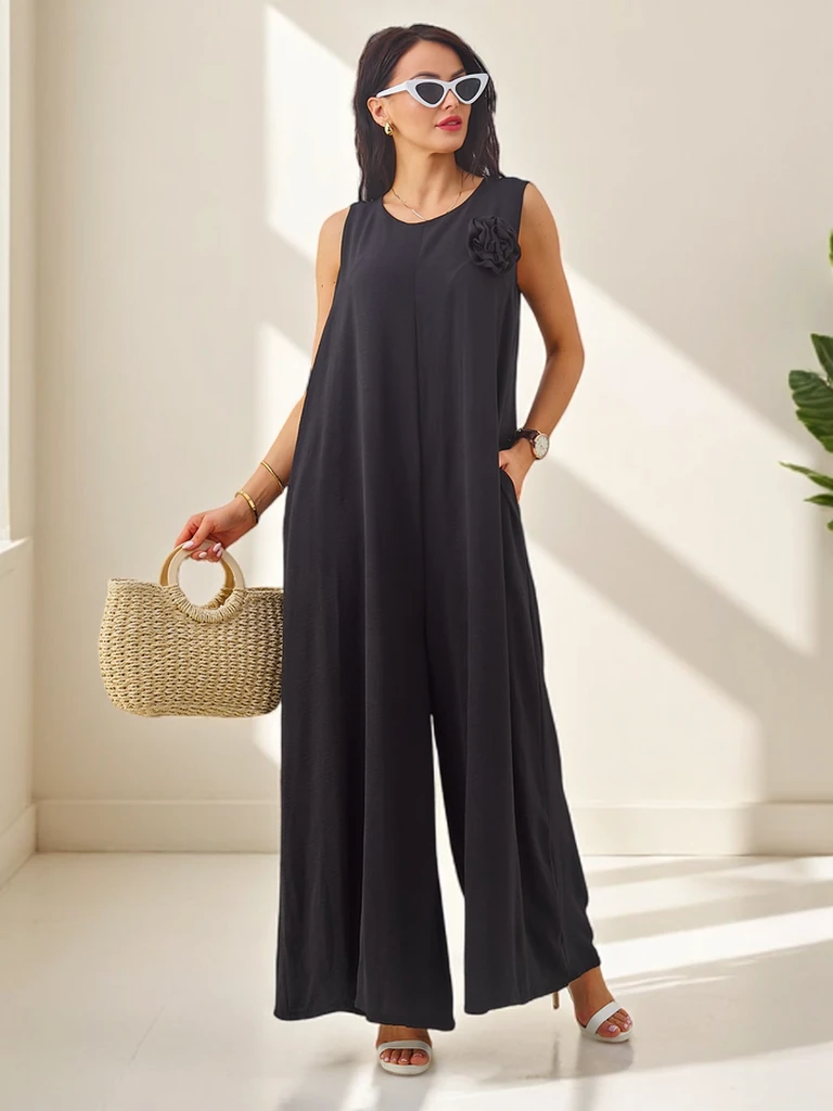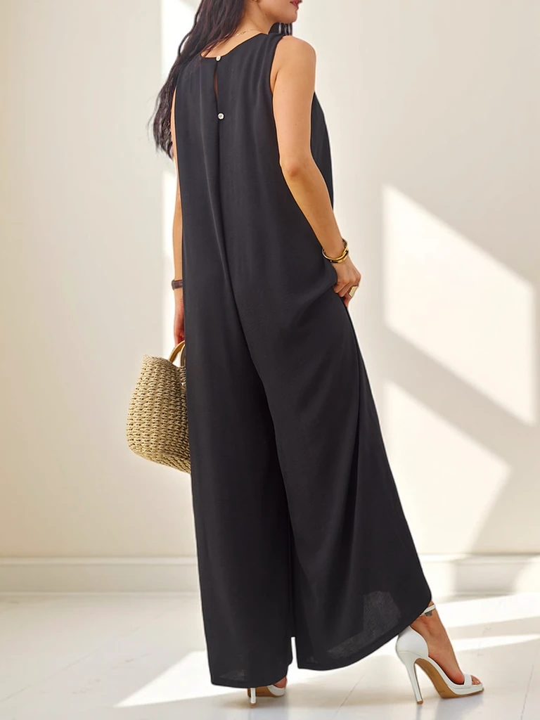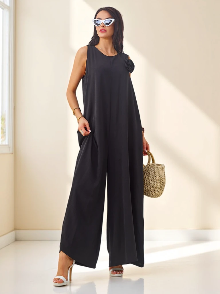 Eleonora Nero – czarny kombinezon z wiskozy na ramiączkach, szerokie nogawki