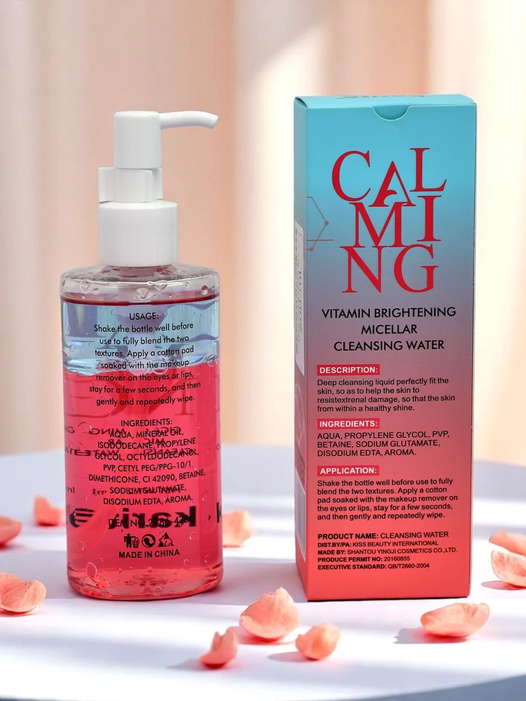 Raminantis ir drėkinantis dvifazis micelinis valymo skystis makiažo nuėmimui su dozatoriumi