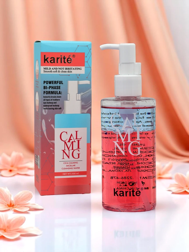 - Raminantis ir drėkinantis dvifazis micelinis valymo skystis su dozatoriumi, 200 ml švelniai pašalina makiažą, valo odą ir suteikia intensyvų drėkinimą. Jo švelni formulė ramina odą, palikdama ją glotnią ir gaivią, be riebaus jausmo. Idealiai tinka jautria