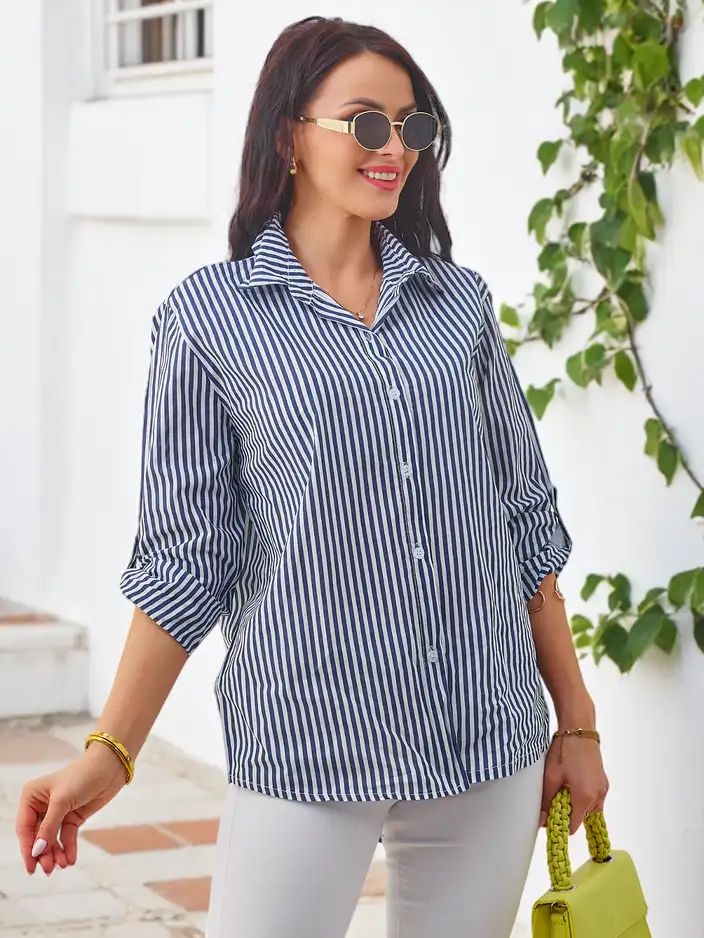 Royalfashion medvilnės moterų dryžuotas marškiniai su užrišimu apačioje