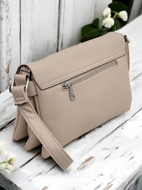 - Moterų rankinė su užtrauktuku ir magnetiniu uždarymu, pagaminta iš ekosumos. Modelis turi 3 skyrius. Be to, jis turi reguliuojamą dirželį. Puikiai tinka kasdieniam naudojimui!