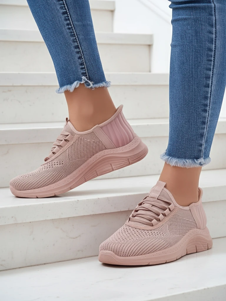 - Originalūs moteriški sportiniai šlepetės, pagaminti iš audinio. Tampri viršutinė dalis švelniai prisitaiko prie pėdos. Patogūs moteriški batai kasdieniam nešiojimui!