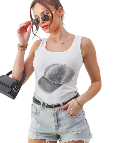 - Moteriškas medvilninis tankas su kepurės spausdiniu, derinantis komfortą su madingu akcentu. Puikus pasirinkimas vasaros dienoms, suteikiantis atsipalaidavusį ir stilingą akcentą bet kokiam laisvalaikio aprangai.