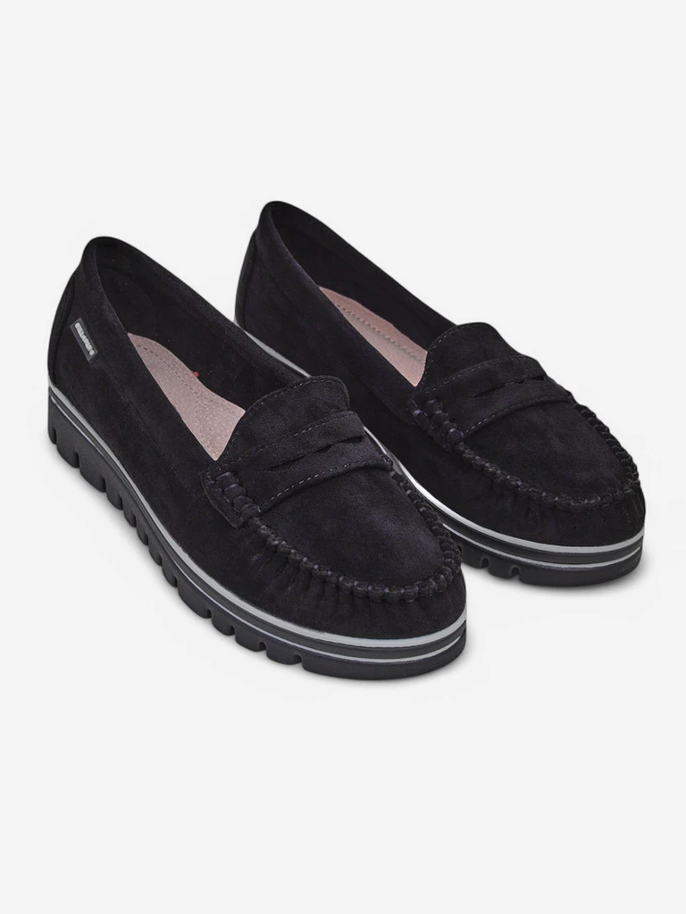 • Lengvi, moteriški mokasinai plokščiu padu. Casual stiliaus modelis, pagamintas iš ekologiškos zomšos odos, vidpadis – natūrali oda. Puikiai tinka pavasario aprangai!