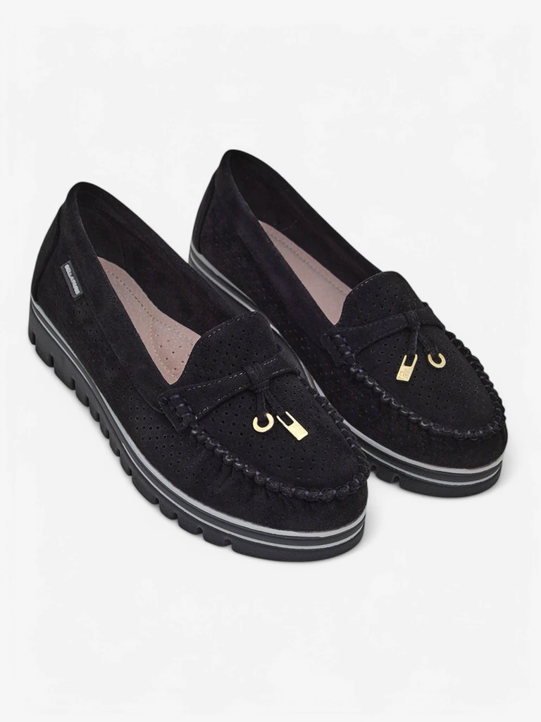 - Lengvi moterų mokasinai su plokščiu padu. Modelis yra kasdieniškas ir pagamintas iš ekologiškos zomšos odos, vidpadis pagamintas iš natūralios odos. Puikiai tinka pavasario aprangai!.