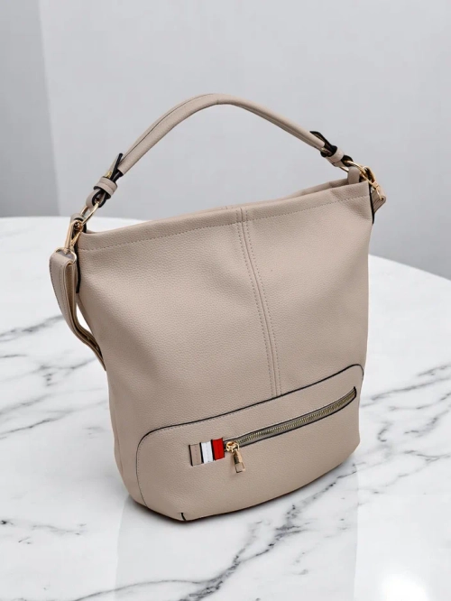 - Didelis moterų rankinės modelis, pagamintas iš ekologiškos odos, su užtrauktuku. Modelis turi 1 skyrių ir 3 vidinius kišenių bei 1 išorinį kišenę. Papildomai, reguliuojamo ilgio petys. Ideali aksesuaras kasdieniniams drabužiams!