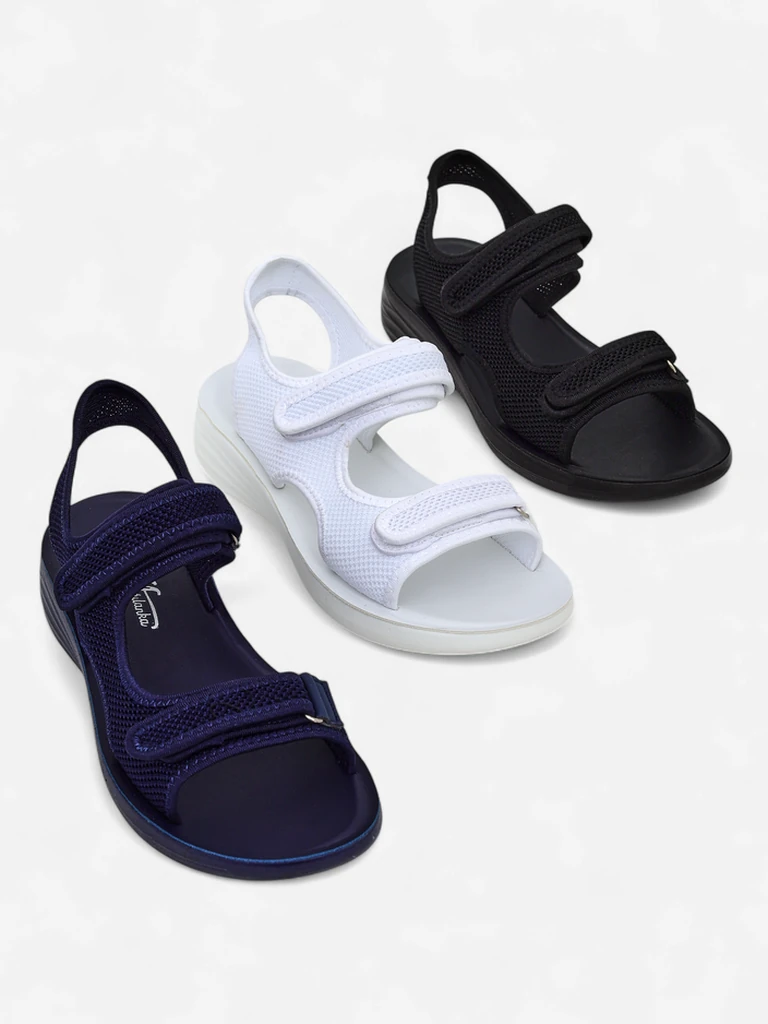 • Yo, these Royalfashion Gosmiles are straight fire! Flat sandals for the ladies, rockin' fabric straps and a comfy rubber footbed. They got that velcro closure, so they stay snug on your feet, ya feel?