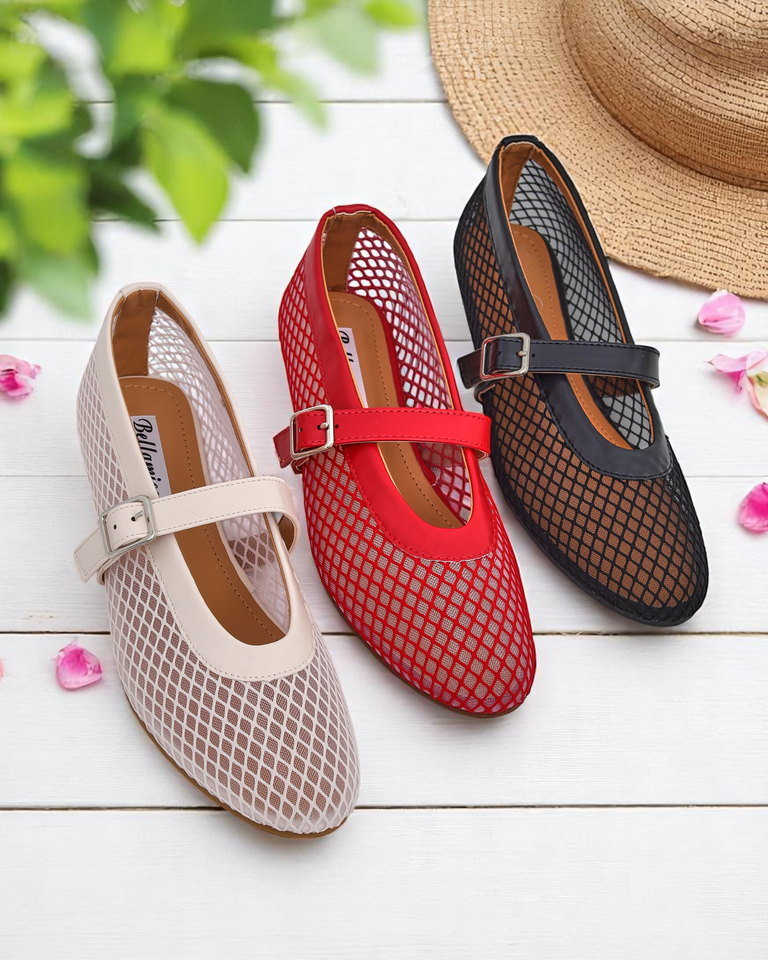 - Išskirtiniai balerinos bateliai, pagaminti išpjauto audinio. Viršus dekoruotas dirželiais. Minkštas ekologiškos odos vidpadis suteikia komfortą, o dirželis tobulai prilaiko batą prie pėdos. Puikiai tinka madingiems deriniams!