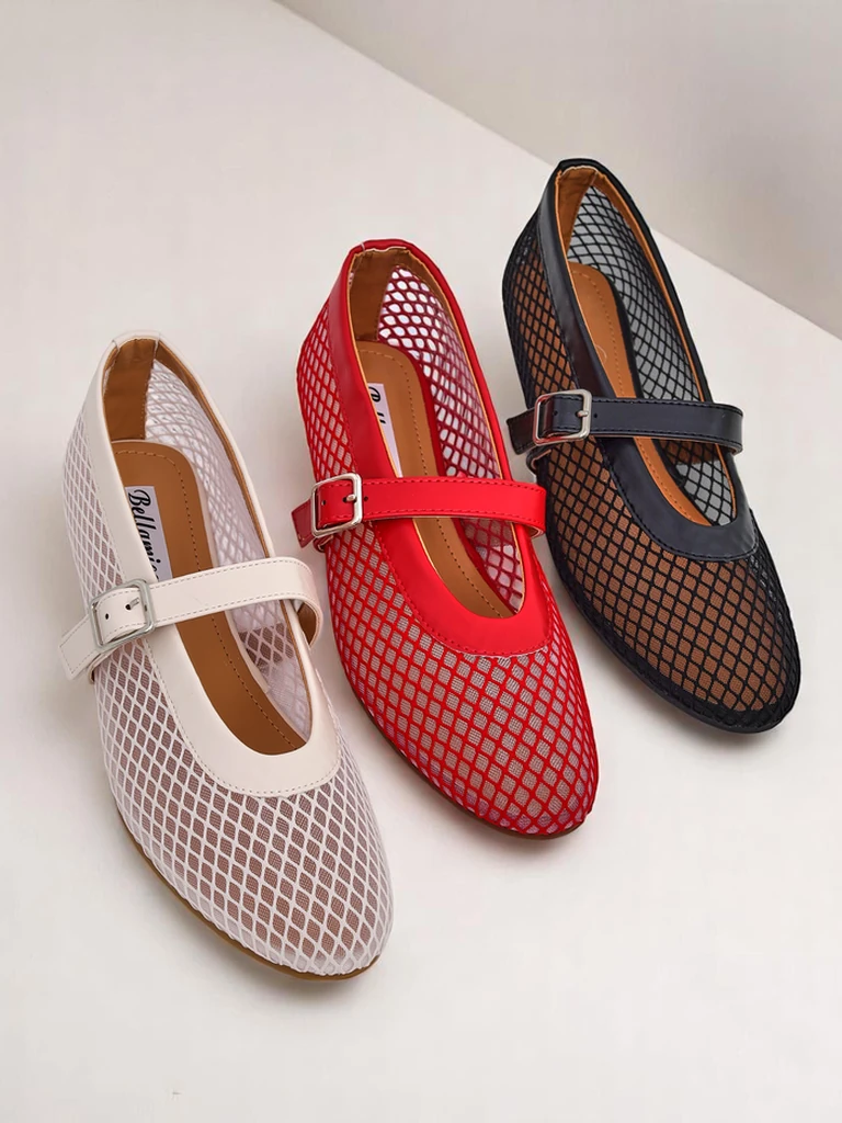 Royalfashion moteriški perforuoto audinio baleto bateliai su dirželiu Naommi