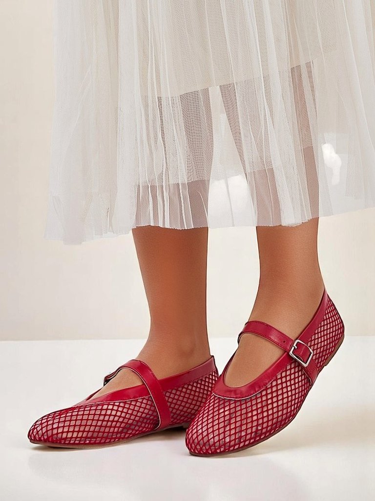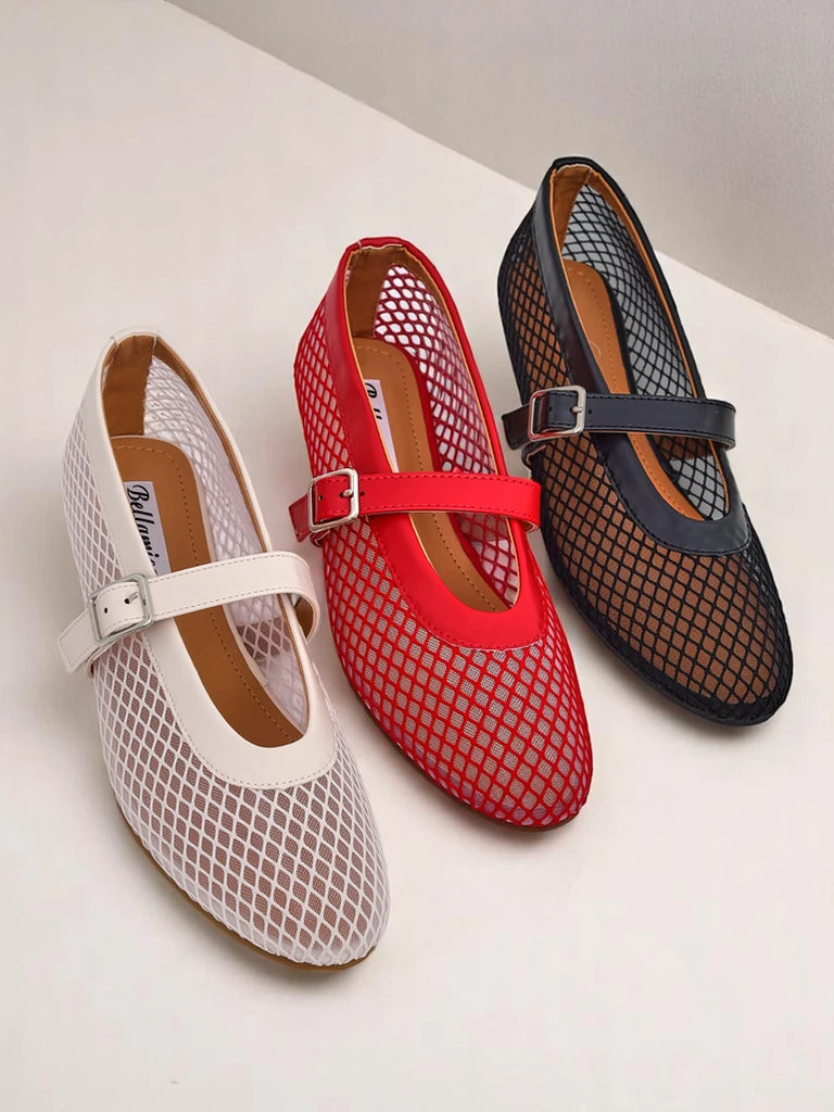 - Išskirtiniai balerinos bateliai, pagaminti išpjauto audinio. Viršus dekoruotas dirželiais. Minkštas ekologiškos odos vidpadis suteikia komfortą, o dirželis tobulai prilaiko batą prie pėdos. Puikiai tinka madingiems deriniams!